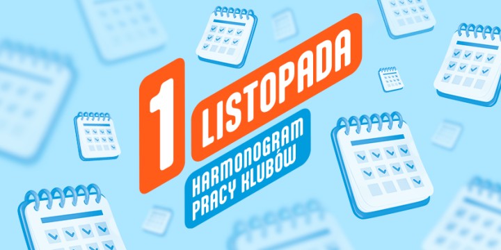 W najbliższy piątek, 1 listopada, większość naszych klubów będzie czynna jak w każdą niedzielę, z kilkoma wyjątkami: